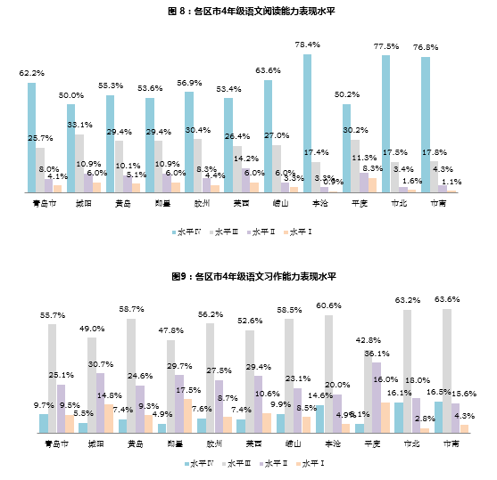 監(jiān)測采用分層整群隨機(jī)抽樣,先將青島市按照行政區(qū)劃分為了10個(gè)抽樣分樣本,根據(jù)各區(qū)市的地理位置、城鄉(xiāng)學(xué)生比例、教育經(jīng)濟(jì)發(fā)展?fàn)顩r、學(xué)校類型等因素在每個(gè)區(qū)市中隨機(jī)抽取12所學(xué)校,每個(gè)學(xué)校抽取4年級(由于測試時(shí)間為2015年1月,實(shí)際測試目標(biāo)群體已升入5年級,但測試內(nèi)容仍為4年級所學(xué)內(nèi)容)60名學(xué)生(不足60人按照實(shí)際人數(shù))進(jìn)行語文學(xué)業(yè)水平測試以及學(xué)生調(diào)查問卷的填答。本次調(diào)查問卷同時(shí)包括樣本校的340名語文教師和120名校長。