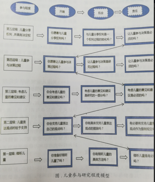 2)兒童參與研究程度模型 (五個(gè)層級(jí))
